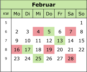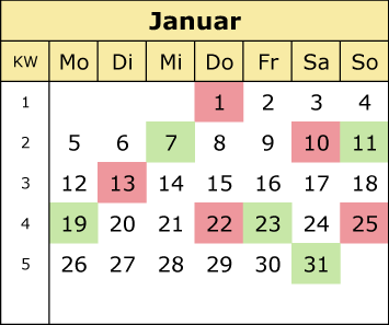 Rot = ungünstige Tage